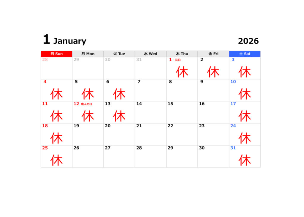 2026年1月営業カレンダー